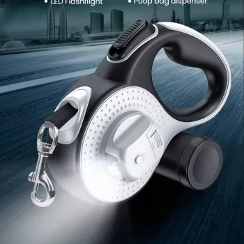Retractable Dog Leash with LED Flashlight & Poop Bag Holder