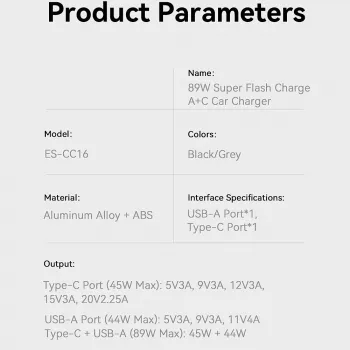 USB C Car Charger 89W 2 Ports Super Fast Charging for iPhone, Samsung, Xiaomi, Huawei